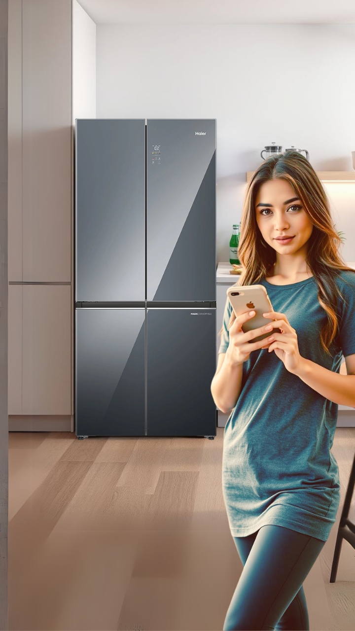 Monitor and control your Haier Lumiere 4-Door Refrigerator remotely via Wi-Fi! Adjust temperature, track food storage, and manage energy efficiency through your smartphone for ultimate convenience.