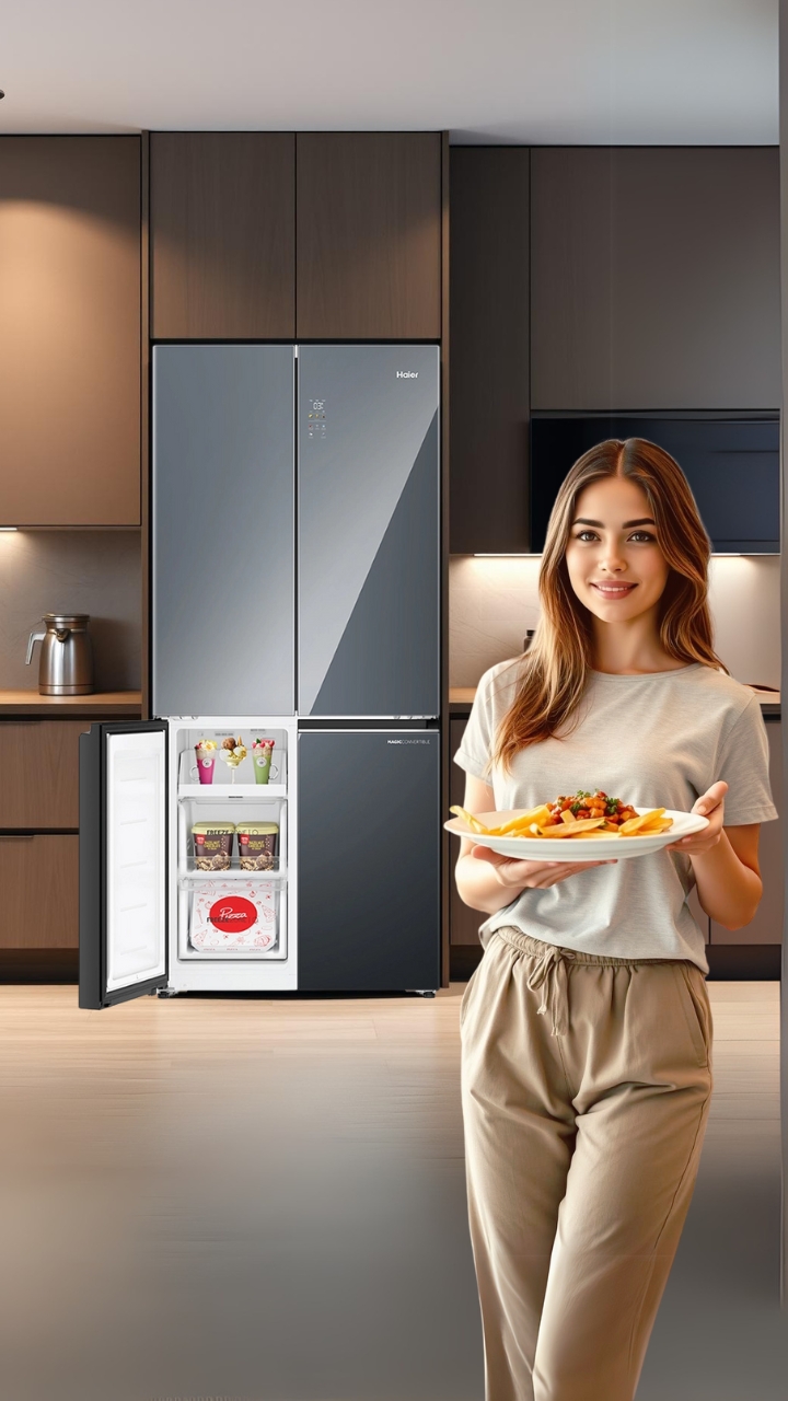 Wi-Fi connectivity via HaiSmart lets users monitor and control cooling settings remotely. This smart feature ensures optimized power use, preventing unnecessary energy wastage and maintaining food freshness.