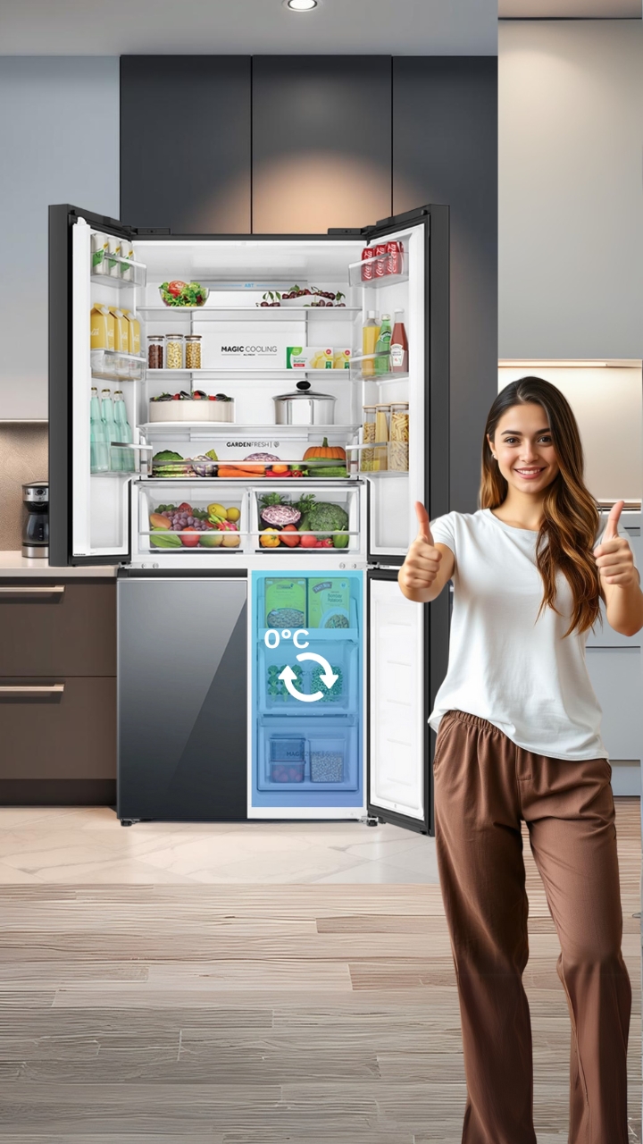 With Smart Sense AI, this refrigerator learns your usage patterns, adjusting cooling accordingly. This keeps the zero-degree zone energy-efficient while ensuring food stays at the perfect temperature.